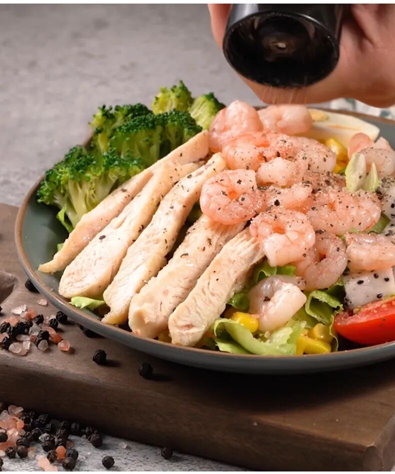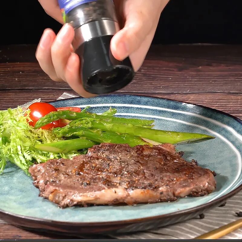 海鹽黑胡椒是黑胡椒和海鹽混合而成,原粒現(xiàn)磨,椒香濃郁,適合搭配低脂餐。