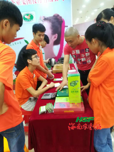 圖為學(xué)子在愛心助學(xué)街海墾茶業(yè)愛心店銷售茶葉。
