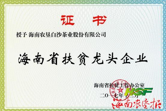 白沙茶業(yè)公司榮獲海南省扶貧龍頭企業(yè)稱號